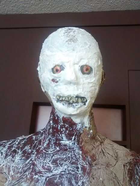 Pegue s los ojos, fabrique con silicio y le puse dientes, estos últimos eran de mi disfraz del año pasado, pero puedes usar uñas postizas paneles para formar una buena dentadura y pegarlas con látex.