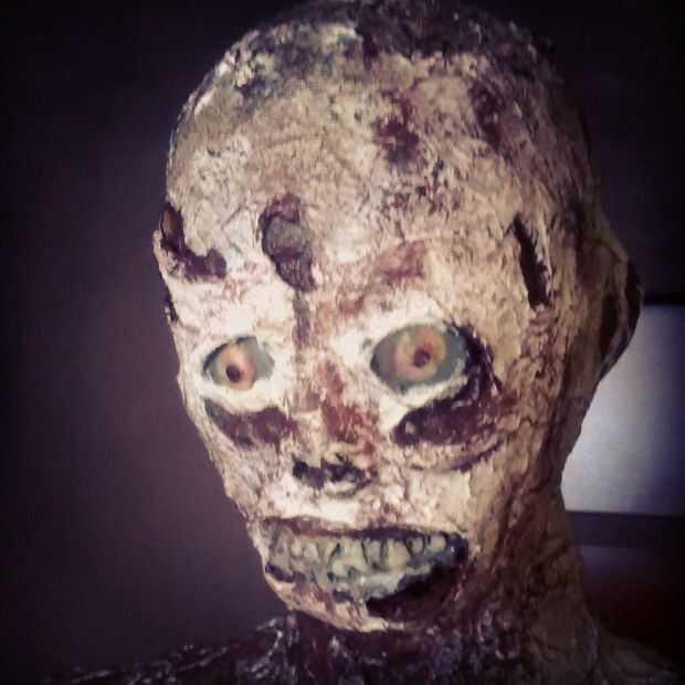 Utiliza mas pintura y detalle un pincel. Además le aplique cabello y vello recorte de una vieja máscara de pestañas.