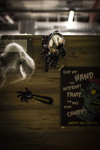 Para darle vida a la oficina alrededor de Halloween he decidido hacer un brazo de zombie moldeada que toma imágenes de comida zombie y publicada en la cuenta de Twitter