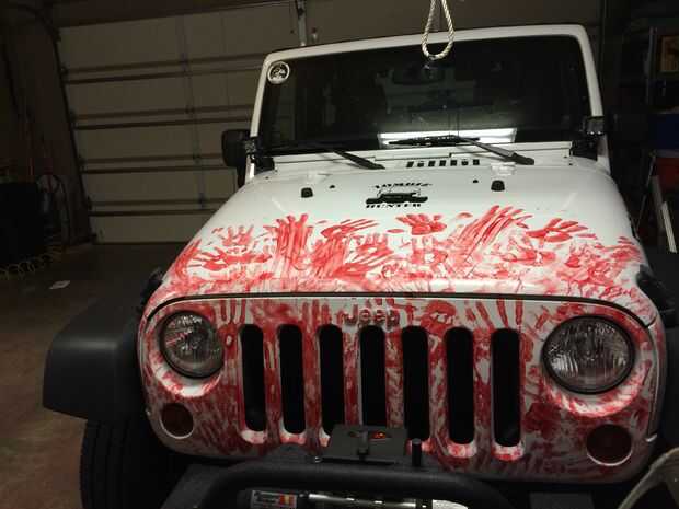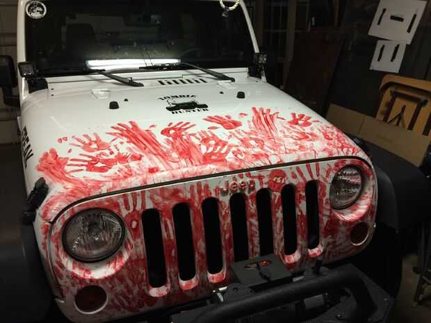Esta vez en lugar de manchar el aerosol, capa de la palma del guante y deja impresiones al azar a lo largo de la campana. Arrastra algunos de los estampados, para dar el efecto del golpe.