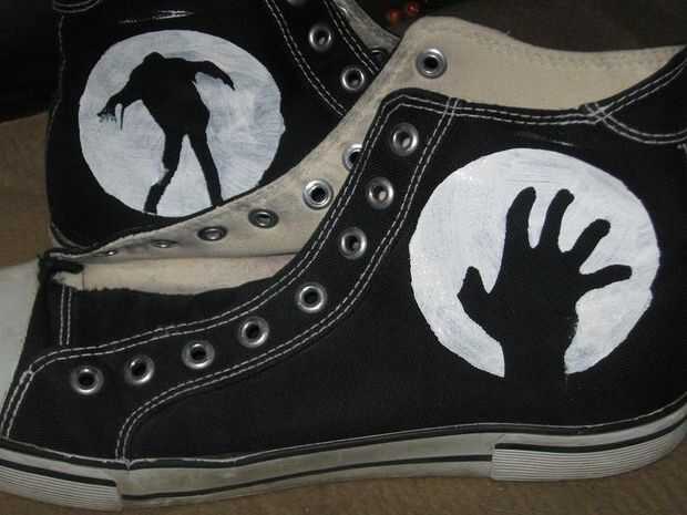 Perfecto para el truco o el tratamiento, estos confortables apartamentos son spooktactularly fácil de hacer y super rad.Uso del resplandor en la pintura oscura, o glam lo para arriba con brillo. O arrastran con el rojo brillante.Se necesita:Zapatos n