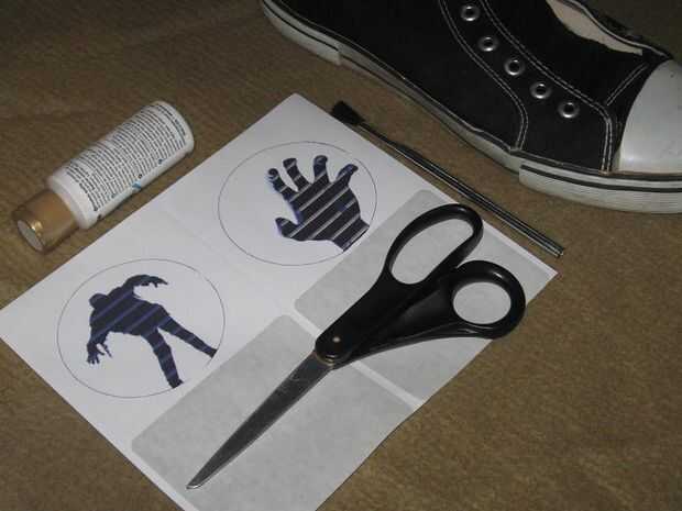Perfecto para el truco o el tratamiento, estos confortables apartamentos son spooktactularly fácil de hacer y super rad.Uso del resplandor en la pintura oscura, o glam lo para arriba con brillo. O arrastran con el rojo brillante.Se necesita:Zapatos n