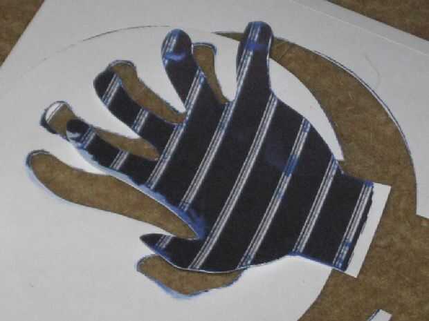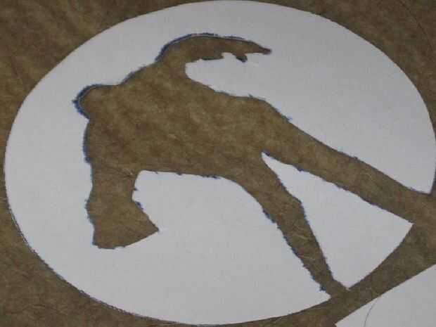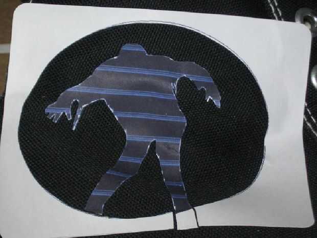 Recortar las imágenes que va a ser negras en el zapato, así como el círculo de la luna.  Mi zapato viejo tenía algunas arrugas en la parte de lona que hacía difícil la aplicación, pero estaba cuidado suavizar los bordes donde se aplicará la pintura.