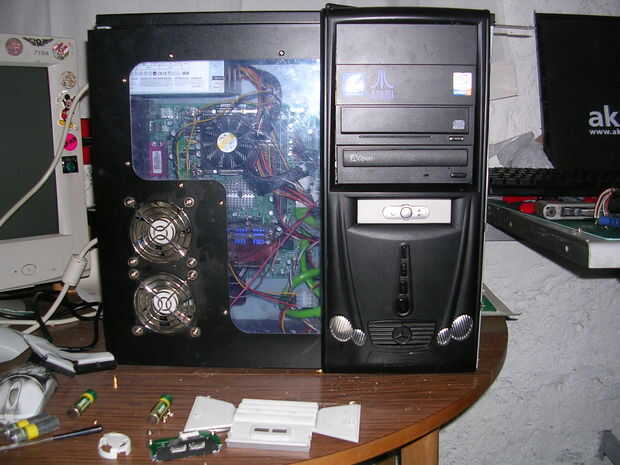 La Bahía fue atada con cintas de pegamento caliente. la placa fue atornillada al panel lateral