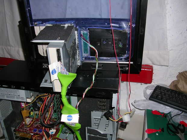 El diminuto tenía una unidad de interruptor que era todo conectada en un enchufe lo y acabo taladrar una placa de unidad de disquete en blanco y utiliza pegamento para fijarlo.