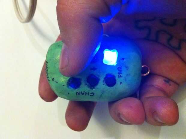 (Cuando se enciende el LED azul se iluminará el pegamento caliente que se ve muy bien al llegar a demostrar!)