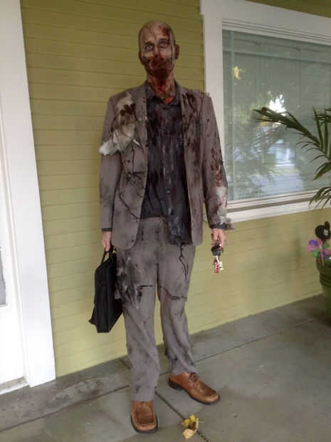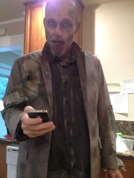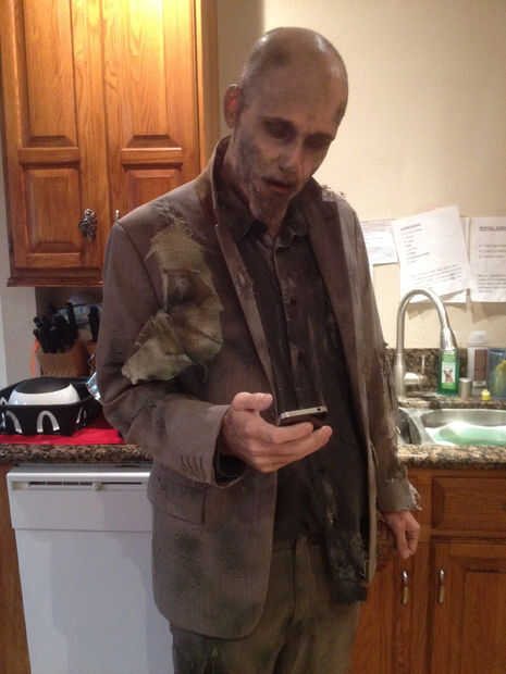 Para ensuciar la camiseta, la zona de la frente, he utilizado algunos maquillaje tienda de dólar - Fundación. Puse en mis manos y unta sobre él. Usted puede hacer lo mismo con algo de sangre para que se vea como sus víctimas frescas trató de escapar le.