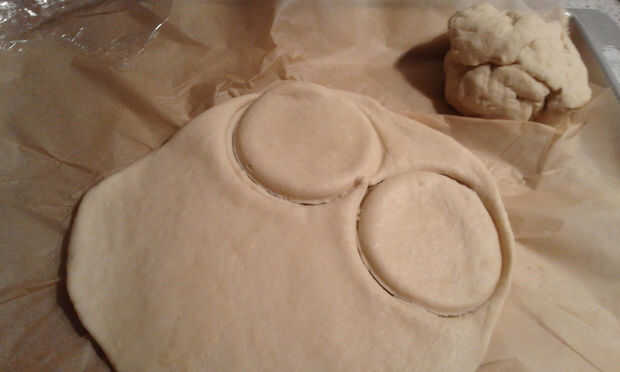 Poner los círculos sobre una placa para horno en una bandeja de horno.