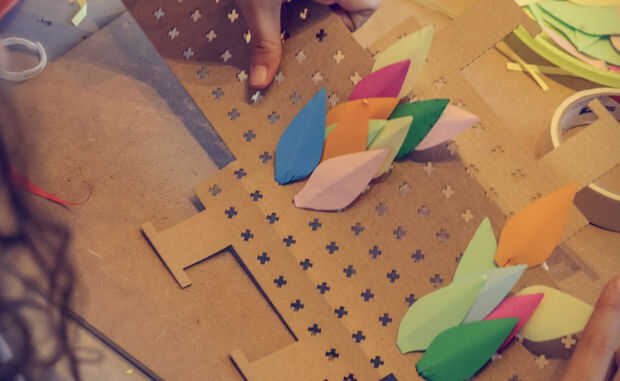 Para proporcionar nuestras máscaras con texturas interesantes que podrían ser reproducidos fácilmente, se han creado tres elementos de papel. Sus nombres son escala, el círculo y la hoja.
