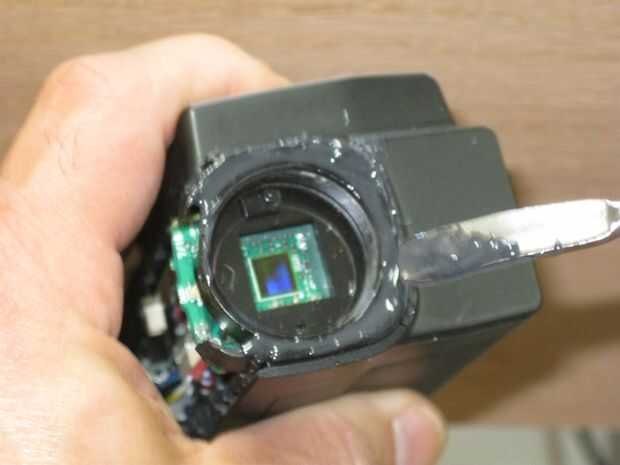 Cubierta original de la cámara hace un buen trabajo de sostener el lente original en su lugar. Con mi montura CS nuevo y mucho más grande que necesitaba más espacio para todo lo. Afortunadamente una pequeña acción de cuchillo caliente me permitió hacer suficiente espacio para la Junta del sensor CS montado volver muy bien.