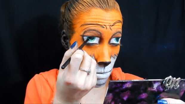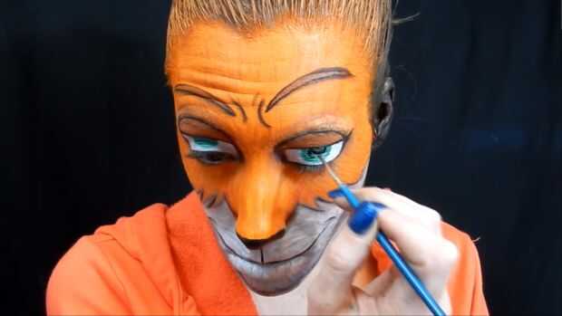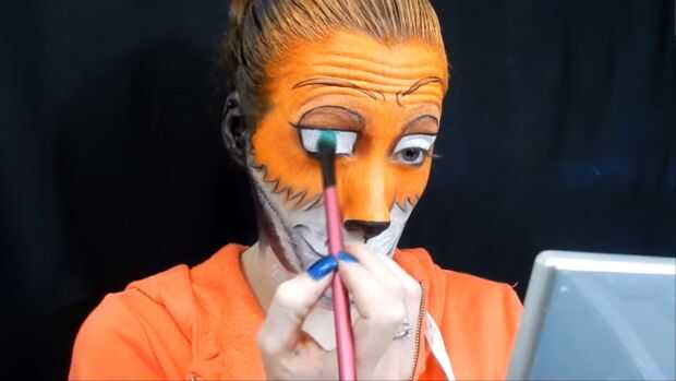Con verde metálico de mi paleta metálica de mehron había puesto en el centro de mis ojos. Entonces usé negro para las pupilas y blanco para un brillo.