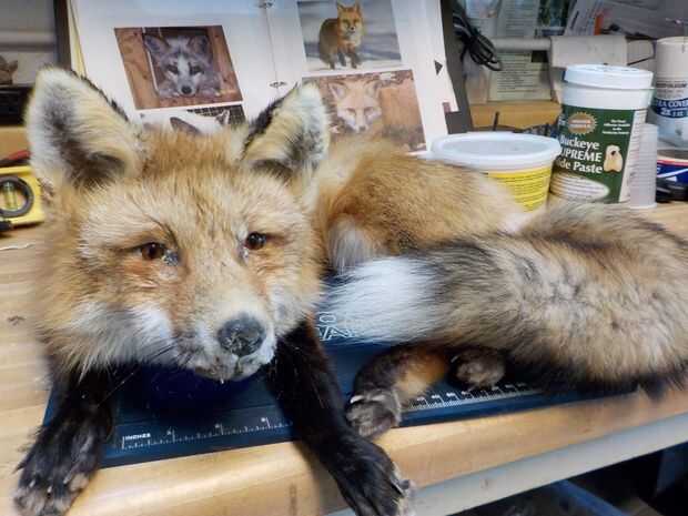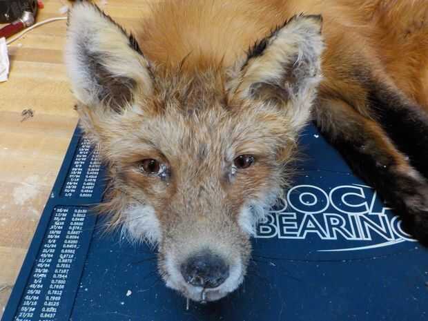 Después de todo los rasgos de la fox han sido escondidos, esculpidos y coloca a su gusto, el Monte ya está terminado en este punto y listo para dejar de lado para secar. Golpe seco la piel con un compresor de aire o con secador sin calor, a la pelusa que (como se muestra en la segunda foto) que también permite secar más uniformemente.