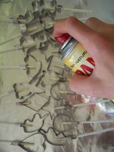Poner un palillo en, poner un clip en el molde, poner en papel de aluminio luego rocíe con pam.  Tus moldes de lechón deben venir con las instrucciones.