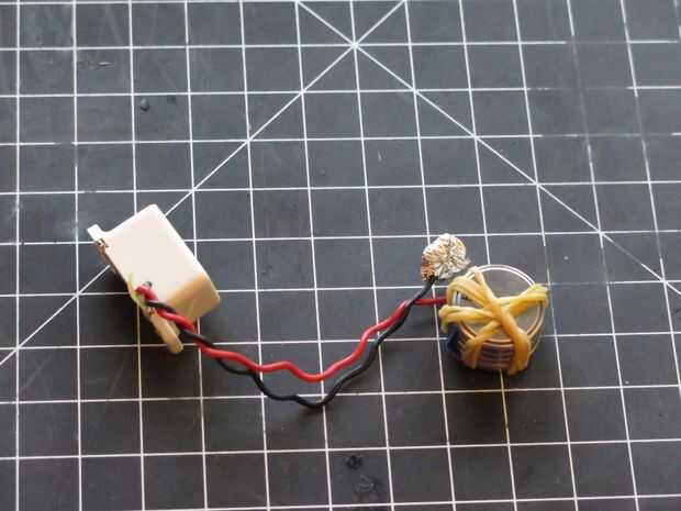 Probar la polaridad de su timbre y disfrutar de su nota estridente de la ciencia. Decide de los conductores han conectado permanentemente y deslizarse bajo las gomas a un lado del sandwich de la batería. Cinta adhesiva hacia abajo por lo que es agradable y seguro.