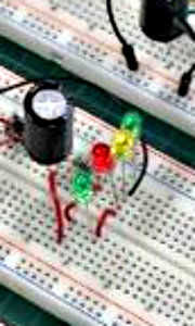 Si lo ponemos en serie observaremos uno de los dos, ya sea el timbre o el LED, se apagará primero, pues el esté más cerca del condensador estará absorbiendo más corriente.