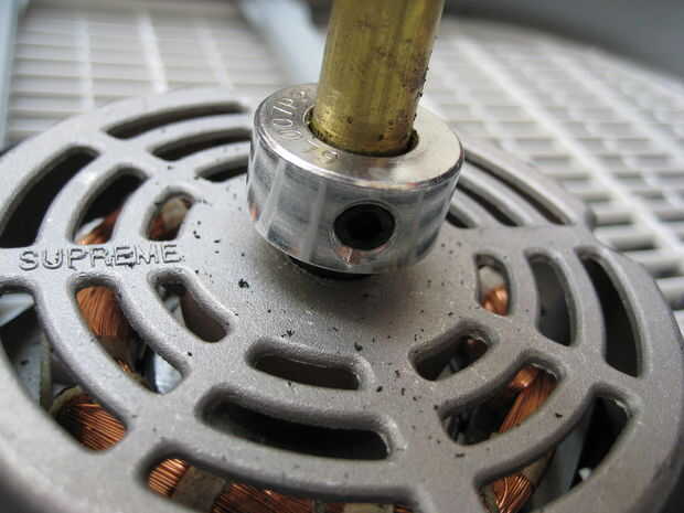 Firmemente la abrazadera el tubo metálico para el eje del motor con su abrazadera de barra.