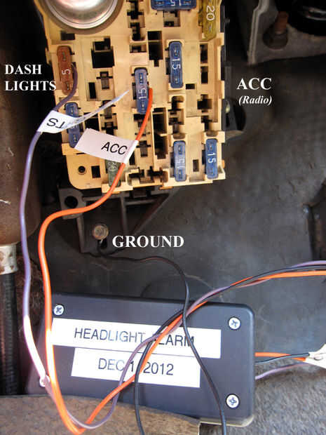 Hay un fusible de 5amp que alimenta las luces de mi tablero. Realmente sólo en cuando mis faros son de. OK, ok, ok, sí. Pude "teóricamente" enciendo mis luces del tablero su propio. ¿Realmente, quiero decir que es lo que hace? Nadie! OK, bastante dicho. Movimiento... Esto sería perfecto para proporcionar el voltaje de 12v "Faro sobre" mi timbre.