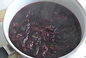 Cuando el agua hierva retirarla del calor y vierta el hibisco jugo en un recipiente