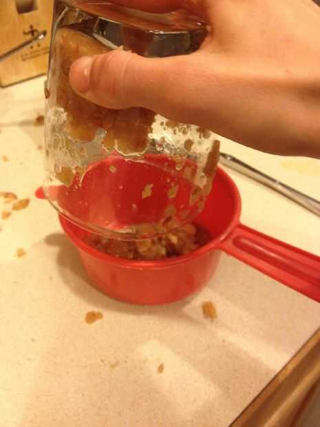 Cuando se descarga la mezcla jugosa pulpa en el colador rápidamente pone el colador sobre la taza usada (no uno limpio).