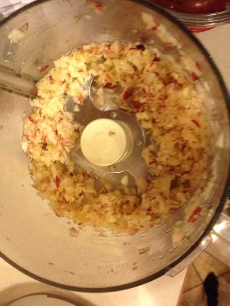 Los trozos de manzana se pegarán al borde de la procesadora de alimentos por lo que necesita raspar de la orilla. Luego se muele las manzanas otra vez