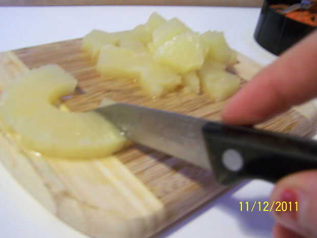 Corte la piña y las zanahorias en trozos más pequeños por lo que es más fácil de mezclar.