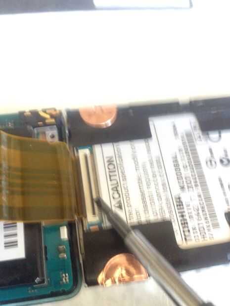 Con herramienta de palanca jalelo para sacarlo en la parte marrón de la conexión con eso encima de la tira debe venir gratis. Doble el alambre de cobre hacia arriba para que puedas obtener HDD a Flip sobre HDD con herramienta de palanca palanca encima de la pinza que sujeta su banda
