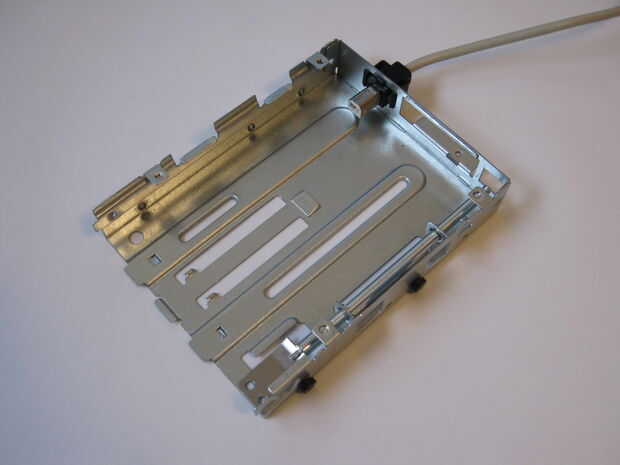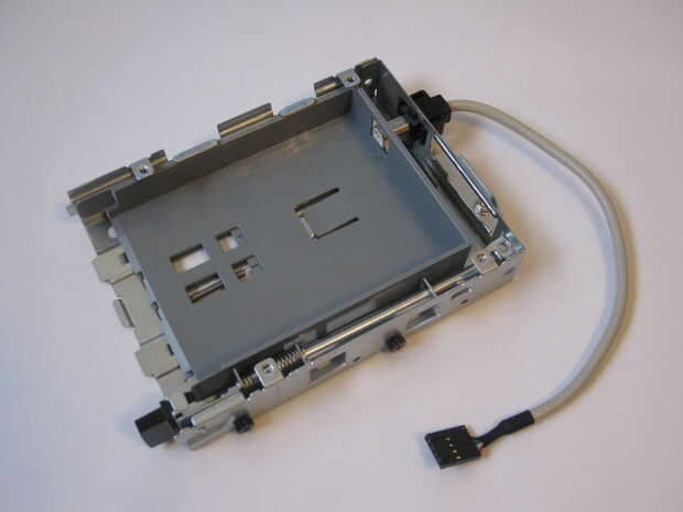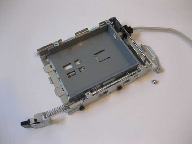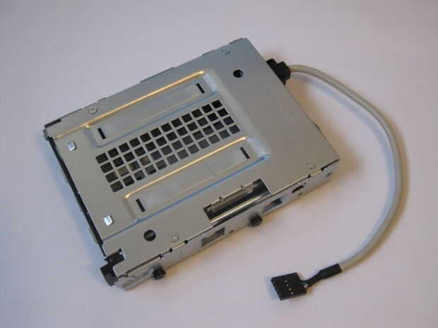 (Esto requirió abrir el lateral y frontal de la computadora y retirar los dos tornillos en el lado de la bahía. Retire el conector a la placa madre y luego deslice la bahía en la parte delantera).