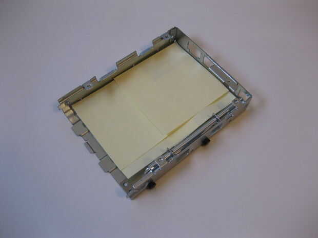 Puedes ver cómo encaja en la jaula (yo pongo post-its en él por lo que es un poco más fácil de ver).