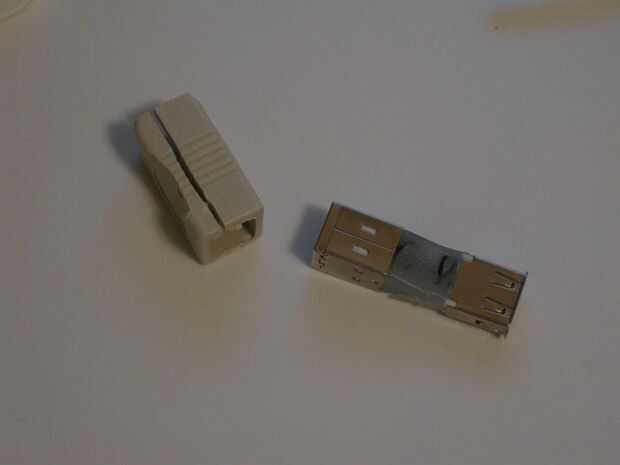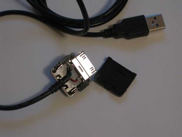 Abrir el adaptador USB/USB (si está utilizando el método de soldadura no necesita específicamente este adaptador, pero necesitas un cable o adaptador con el extremo USB-B hembra en él.).