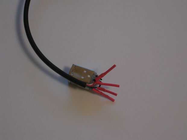 Antes de cerrar el conector, mapa los contactos hasta el final USB con un multímetro. Ahora cerrar el conector y poner un poco de pegamento loco para celebrar juntos.