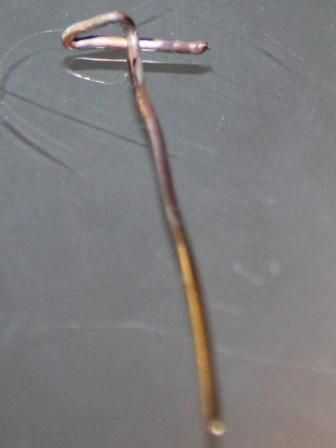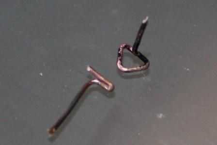 Calentar la primera marca "plancha" con un mechero (apropiada del calor tomó unos 20-30 segundos con el alambre que usé), con la "plancha" con los alicates. Asegúrese de no agarrar el "hierro" demasiado cerca el símbolo ya que el calor en los alicates en lugar de su marca "hierro".