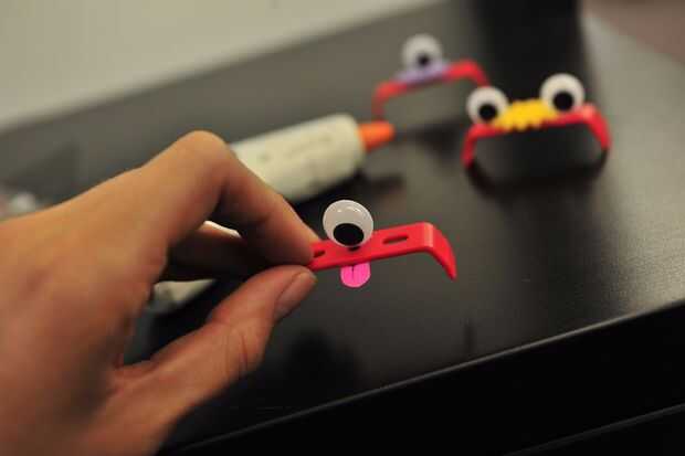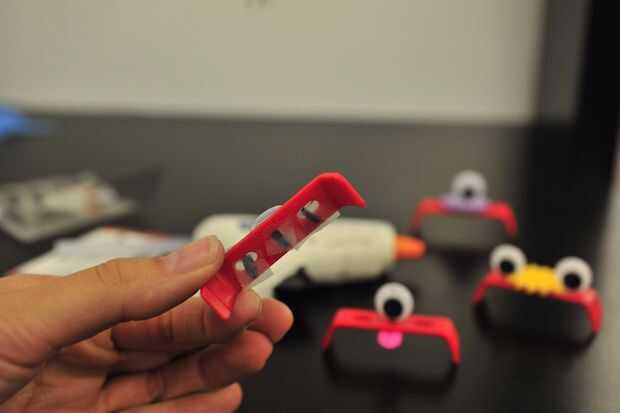 Otras variaciones creamos utilizan lazos de torcedura de sobras y cinta adhesiva transparente para sujetar ojos saltones a través de los orificios de clip de zUNO. Adición de una lengua con notas adhesivas crea una personalidad traviesa para una criatura de lo contrario simple.