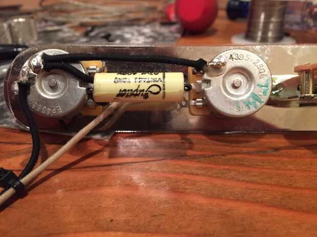 Pido disculpas por no tomar mejores fotos durante este paso. Una vez que sale de soldadura, es difícil para mí al hombre de mi teléfono. Algunos prefieren usar alambre desnudo, núcleo sólido para el bus de tierra pero prefiero utilizar cable aislado como este empuje de paño detrás del alambre. Si es posible, ser consistente con los colores de los cables (es decir, utilizar negro para el frío y blanco para caliente). Esto le ayudará más adelante en su circuito es necesario reparar.