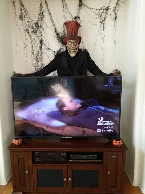 Tema de nuestro Halloween yarda de la exhibición este año es Brujas. Mientras que las damas se compran, mi esposo hizo al gnomo como bruja chozas en el fondo y había diseñado la iluminación.