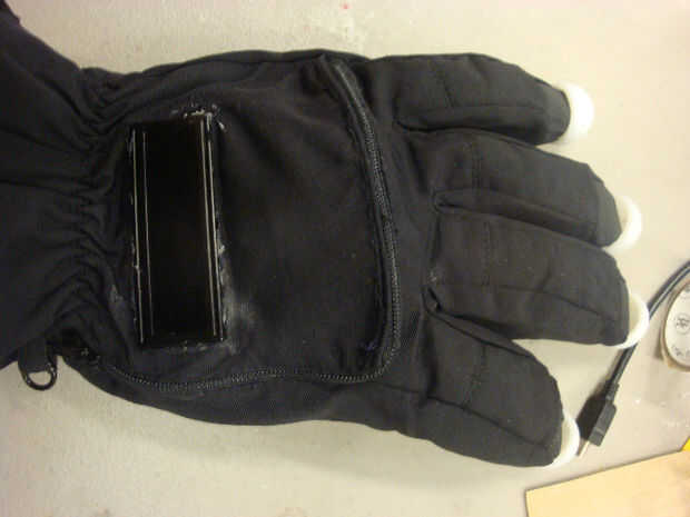 El zurdo es un dispositivo bastante simple en teoría pero mucho más difícil que realmente trabajo. Recoge datos de un telémetro sonar, convierte los datos a una distancia y la distancia se muestra en la pantalla LCD. Luces en la punta de los dedos indican que el microprocesador recibe corriente y proporcionar una adición muy estética para el zurdo.