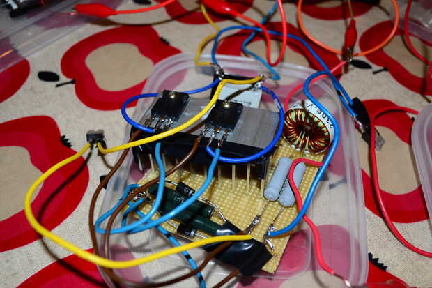 aquí hay algunas fotos de mi controlador de 555 temporizador flyback con dos de mi índice de flybacks. Por desgracia, no tengo las piezas para construir un driver ZVS de flyback, por lo que decidí mejorar mi controlador existente. La configuración si